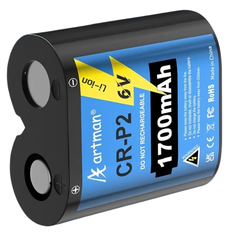 The Artman CR-P2 is a high-performance 6V lithium manganese dioxide (LiMnO₂) battery, engineered for high-drain devices requiring reliable and long-lasting power. With a nominal capacity of 1400–1500 mAh, it delivers consistent voltage output, ensuring optimal performance in applications such as digital and film cameras, flash units, and security systems. Its compact rectangular design (approximately 36×19.5 mm) and lightweight construction (around 37–42 g) make it suitable for portable electronics. The battery boasts an impressive shelf life of up to 10 years, thanks to its low self-discharge rate, allowing for extended storage without significant loss of charge. Operating efficiently across a wide temperature range of -40°C to +70°C, it maintains stable performance in diverse environmental conditions. The Artman CR-P2 is a non-rechargeable primary battery, ensuring safety and reliability in demanding applications. It is compatible with various models, including DL223A, EL223AP, K223LA, and 5024LC, among others. This battery is ideal for professionals and enthusiasts seeking dependable power solutions for their high-drain devices. Its robust design and long shelf life make it a preferred choice for users requiring consistent performance over extended periods. Whether for photography, security, or other electronic applications, the Artman CR-P2 offers a reliable power source to meet your needs.