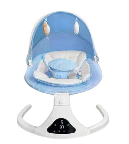 A baby swing is a soothing, motorized seat designed to gently rock or swing a baby back and forth, mimicking the calming motion of being held. It provides a safe and comfortable space for babies to rest or play, often equipped with harnesses to keep them secure. Many models feature adjustable speeds, swing directions, and recline options to suit a baby’s needs. Some swings include entertaining features like music, nature sounds, or toys to engage the baby. Lightweight and portable, they can be moved easily from room to room. The frame is typically sturdy, designed to support the baby’s weight, and often folds for storage. The soft, cushioned seat is removable and machine washable for convenience. Baby swings are an essential tool for parents, offering a hands-free option to help calm a fussy baby or allow for short breaks. They are available in various styles, colors, and designs to match home decor.