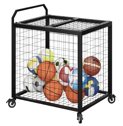 A ball storage cart is a practical and durable solution for keeping sports balls neatly organized and easily accessible. Designed with a sturdy metal or heavy-duty plastic frame, it ensures long-lasting use in gyms, schools, or homes. The open design allows quick visibility and access to balls of various sizes. Equipped with smooth-rolling wheels, it offers effortless mobility from one place to another. A spacious basket or tiered shelves provide ample storage for multiple balls at once. Its compact structure helps save floor space while maintaining tidiness. Ventilated sides keep balls dry and in good condition. Easy to assemble and maintain, it is ideal for both indoor and outdoor use. This versatile cart makes organizing and transporting sports equipment simple and efficient.