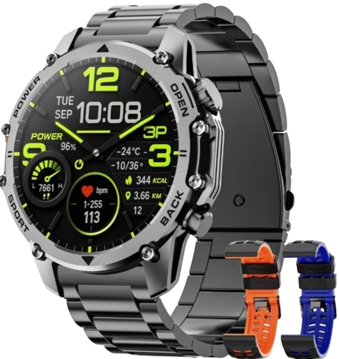 The Military Smart Watch is built for toughness, combining durability with advanced smart features. Designed with a rugged, shock-resistant body, it can withstand extreme outdoor conditions. Its waterproof and dustproof design makes it reliable for any adventure. The watch offers real-time heart rate and fitness tracking to keep you on top of your health. With GPS navigation and multi-sport modes, it’s perfect for hiking, running, and training. Long-lasting battery life ensures you stay connected without constant charging. Smart notifications keep you updated with calls, messages, and apps on the go. The clear HD display provides easy readability in bright sunlight or at night. Stylish yet practical, this watch is ideal for both outdoor enthusiasts and everyday wear.