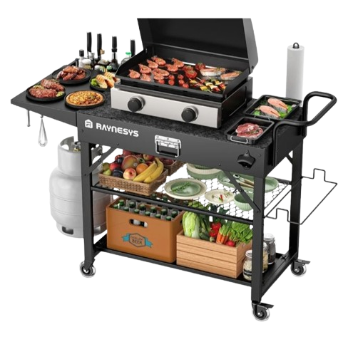 This outdoor grill cart is a perfect companion for your backyard BBQs and cookouts. Designed with durable, weather-resistant materials, it ensures long-lasting performance. The spacious tabletop provides ample room for prepping ingredients or holding serving trays. Equipped with wheels, it allows easy mobility across patios or decks. Multiple shelves and hooks offer convenient storage for grilling tools, spices, and accessories. Its sleek and functional design blends effortlessly with any outdoor setup. Ideal for both gas and charcoal grill support. Enhances your outdoor cooking experience with added convenience and style. A must-have for grill enthusiasts who love organized cooking.