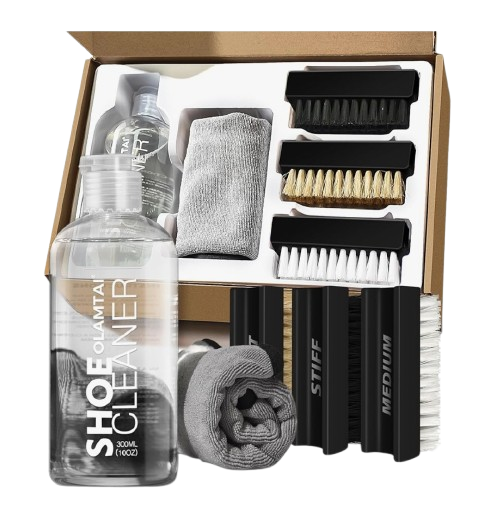 A premium Shoe Cleaner Kit designed to keep your footwear looking fresh and spotless. It gently lifts dirt, stains, and grime without damaging materials. Suitable for sneakers, leather shoes, suede, canvas, and more. The powerful yet safe cleaning solution restores original color and texture. A soft-bristle brush ensures deep cleaning in hard-to-reach areas. The included microfiber cloth delivers a smooth, streak-free finish. Perfect for daily care or full restorations. Compact and travel-friendly for cleaning on the go. Ideal for sneakerheads, athletes, and anyone who wants their shoes to stay looking new.