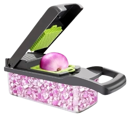 The Vegetable Chopper is a fast and efficient kitchen tool designed to simplify meal prep. It features sharp stainless steel blades that quickly dice, slice, and chop a variety of vegetables. With a simple press, it saves time and effort compared to traditional cutting. The compact design fits easily on countertops and in drawers. Its non-slip base provides stability while chopping. Made from durable, food-grade materials, it’s safe for everyday use. The removable parts are easy to clean and dishwasher safe. Ideal for busy cooks, it helps prepare salads, stir-fries, and more in seconds. A must-have gadget for a hassle-free cooking experience.